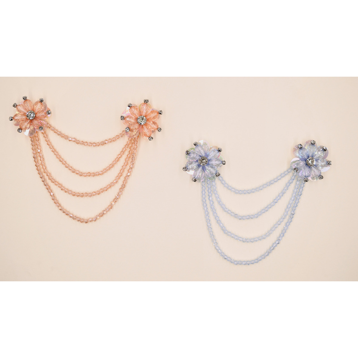 ACCCESSORIO DOPPIO FIORE CONE PERLINE STRASS E PAILLETTES
